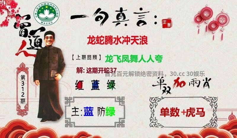 312期【解一句真言】:龙蛇腾水冲天浪,冲天浪,解天肖猪龙兔牛猴马